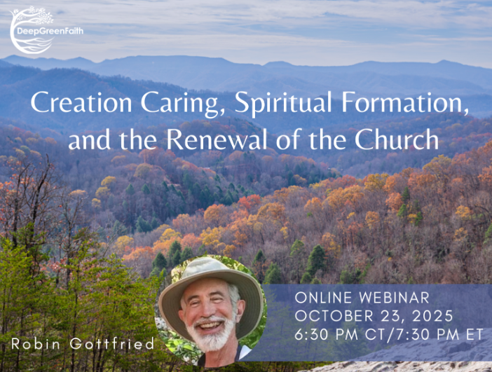 Robin Gottfried is Emeritus Professor of Economics and founding director (retired) of the Center for Religion and Environment at Sewanee: The University of the South. He directs the Center for Deep Green Faith’s certificate program in Contemplation and Care for Creation and serves on its board.