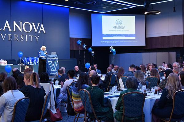 Annually, the department hosts induction ceremonies for the two international honor societies representing our disciplines, Chi Sigma Iota (Counseling) and Kappa Delta Pi (Education). In opening comments, Department Chairperson Teresa G. Wojcik, PhD, shared, “Occasions like today’s ceremonies provide us the opportunity to pause, reflect and renew our commitment to our daily work. We are reminded of the larger purposes for which we joined the teaching, leadership and counseling professions and of the principles that guide our efforts.” Chi Sigma Iota welcomed 28 new members, and Kappa Delta Pi initiated 12 new members. Following the initiation ceremony, Scott Weinstein, acting assistant to the superintendent of the Lower Merion School District and adjunct instructor in the department, offered comments that beautifully communicated the vital importance of education and counseling to our society.