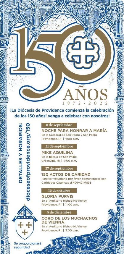 Beginning September 8, 2021, the Diocese of Providence is celebrating the sesquicentennial of its foundation through a series of events running through June 2022. For more information on our anniversary events, visit dioceseofprovidence.org/150
