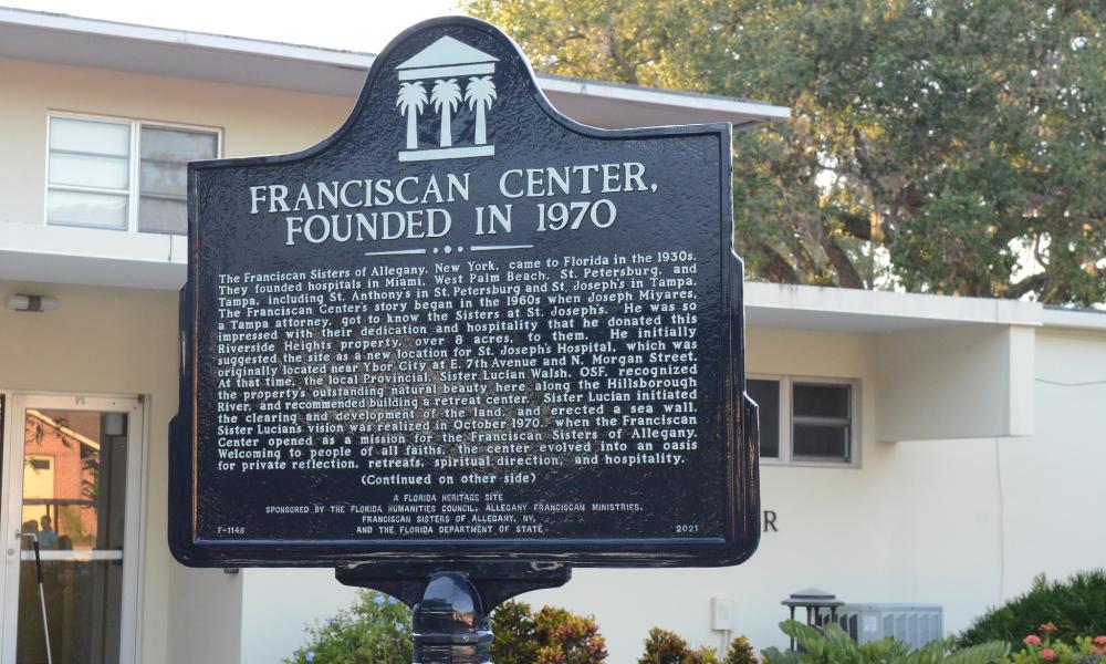 "Some describe the Franciscan Center as an oasis in the middle of the hustle and bustle of the city of Tampa. The Center was founded in 1970 by the Franciscan Sisters of Allegany, New York, after a local attorney of deep faith was so impressed with their mission, he donated his 8-acre riverfront property to the Sisters."