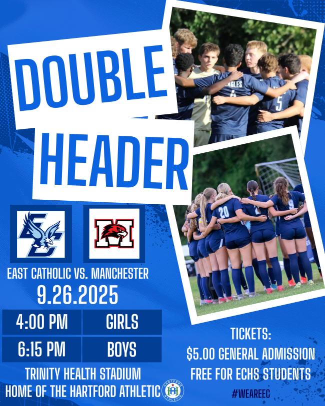 East Catholic Soccer is bringing the heat Friday night at Trinity Health Stadium, Home of the Hartford Athletic! Watch our Girls (4:00 PM) and Boys (6:15 PM) take on Manchester in what's sure to be an epic night of soccer!