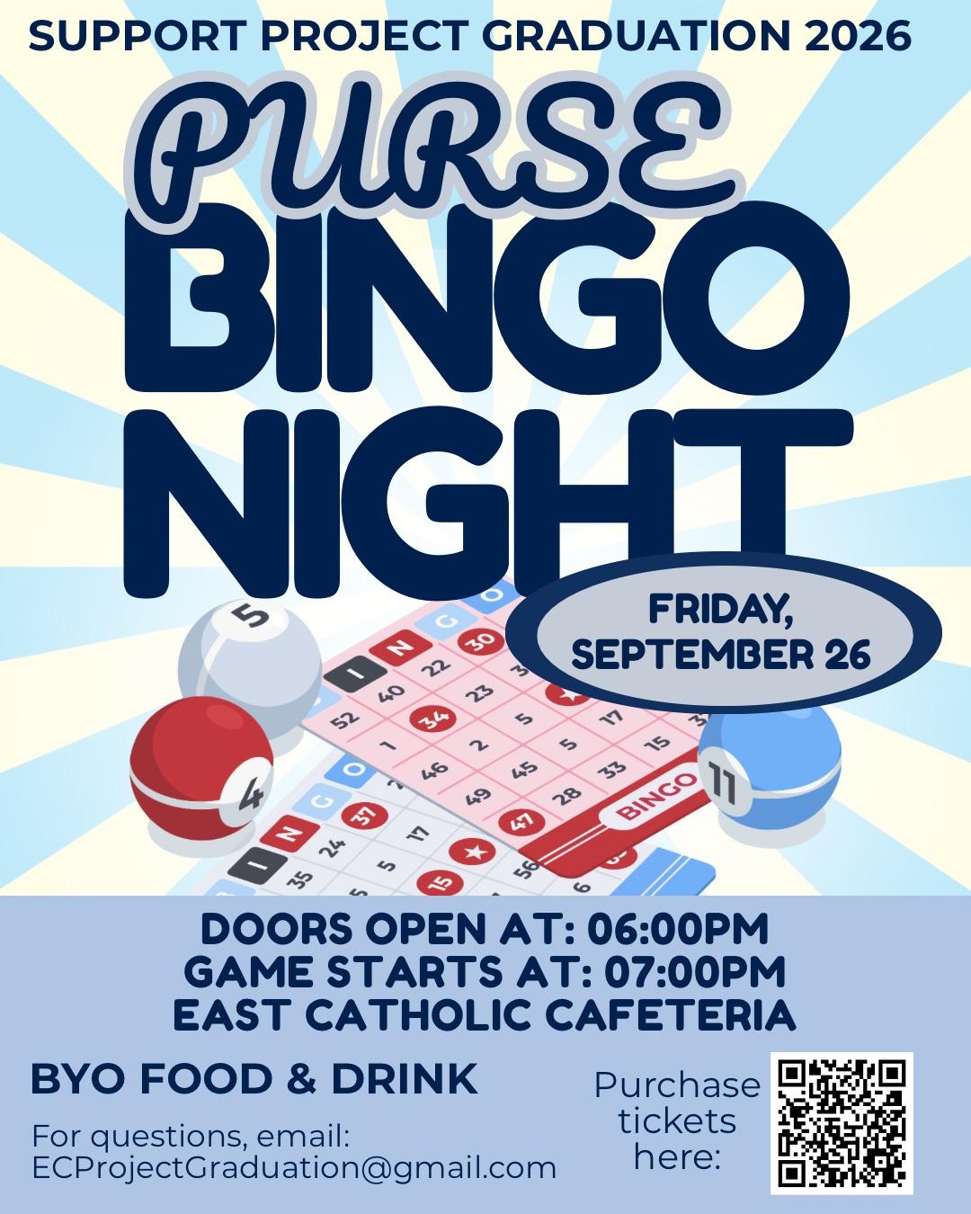 Our annual Purse Bingo event is Friday, September 26th, in the East Catholic Cafeteria, and you don't want to miss it! Join us for a fun night of games, friends, and the chance to win a fabulous designer handbag! All proceeds from the event will directly support ECHS Project Graduation for the Class of 2026.