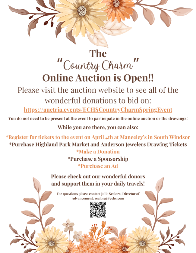 The website is open to purchase event tickets, drawing tickets, sponsorships and ad space and can be accessed here: https://auctria.events/ECHSCountryCharmSpringEvent