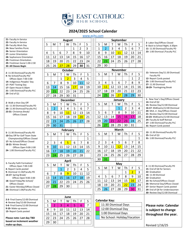 The 2024-2025 School Calendar has been posted to the ECHS website and portal.