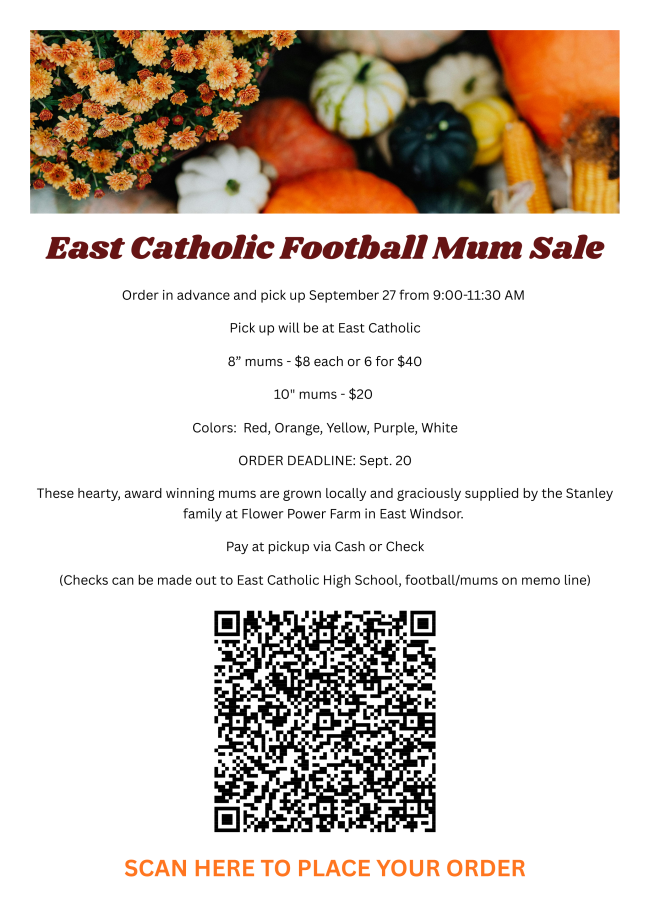 Fall is in the air! Support the East Catholic Football team and get your yard ready for the season with our annual Mum Sale!