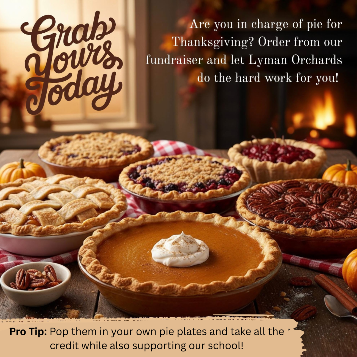 The Parents' Association Lyman Orchards Pie Sale is officially in full swing!