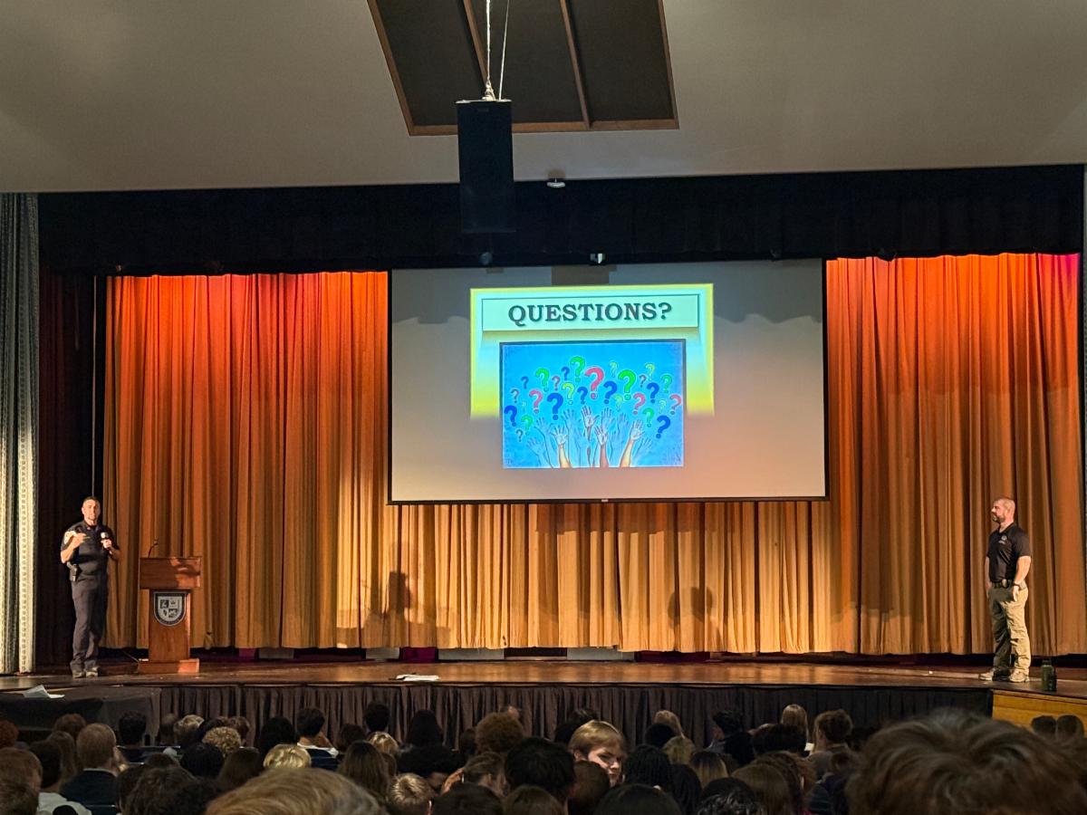 Thank you to Lieutenant Monge and Sergeant Williams from the Manchester Police Department! They recently provided a crucial safety presentation to our entire student body. This session builds on the extensive training our faculty and staff received last spring. We are incredibly grateful for their continued partnership in helping to keep East Catholic High School a secure place to work and learn. We appreciate them equipping us with knowledge for any situation.