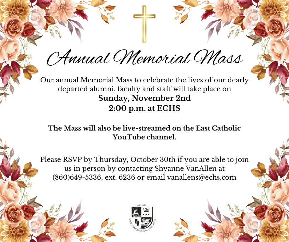 Please join the East Catholic community as we celebrate the lives of our dearly departed alumni, faculty, and staff at our Annual Memorial Mass.