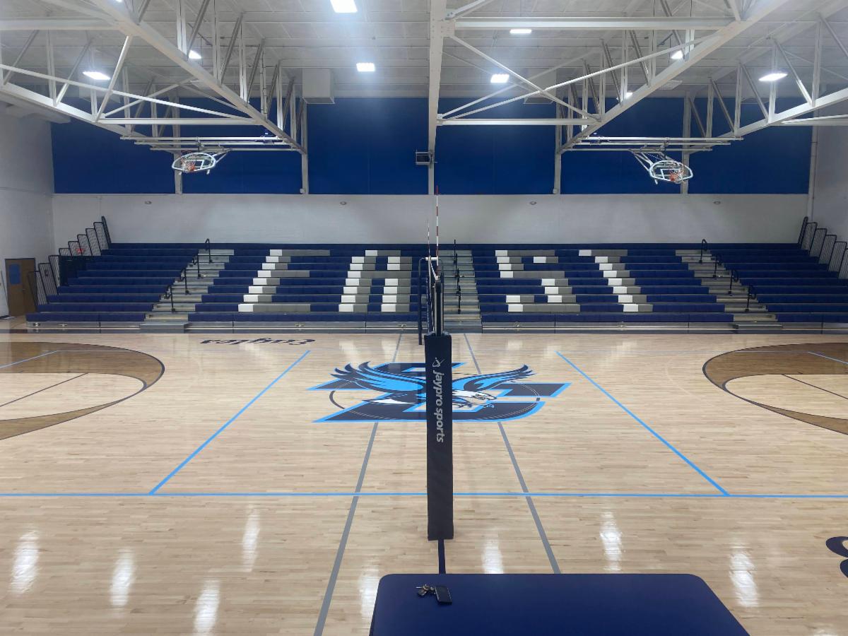 The renovated Rev. Robert E. Saunders Gymnasium is open for business! Our volleyball teams have played a number of games in there over the past two weeks, and it is phenomenal! We had the whole school in there today for our fall pep rally.
