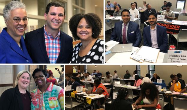 Last week, we helped host the first ever "Hospitality Hires" event outside of the City of Chicago, in the south suburban region. More than 30 employers, including four hotels, from cities and towns across the area came together to interview more than 400 pre-screened candidates. Cook County Board President Toni Preckwinkle joined us and was able to meet with several of the applicants who received offers from our attending hotels. This was a great opportunity to not only fill much needed roles within our member properties but also help educate the more than one dozen elected officials who attended about the role our industry plays in providing quality jobs to Illinoisans. IHLA is going to continue to expand this program to other regions of the state in the coming months to help provide greater employment services to our members.