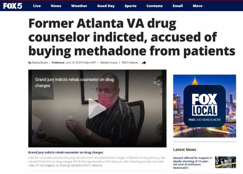 FOX 5 has been reporting on Fritz since last year, after obtaining secretly recorded video of Fritz allegedly purchasing methadone from veterans.