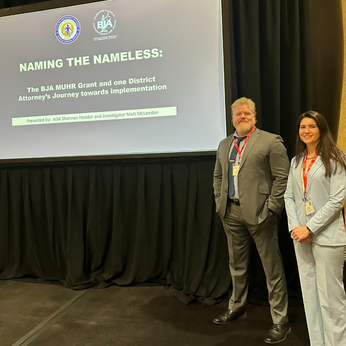 | | Staff from the DA's Office enjoyed another fantastic Summer Conference hosted by the Prosecuting Attorneys' Council of Georgia! Thank you to Chief Assistant District Attorney Edward Chase, Deputy Chief ADA of the Appeals and Litigation Support Unit Sam d’Entremont, and Director of Training Drew Healy who all shared their expertise as presenters at the conference. | | DA Boston participated in a panel discussion for Fair and Just Prosecution fellows across the country hosted by Joy Copu McCray, FJP fellow and summer intern in the DeKalb DA’s Office. DA Boston spoke about her career journey, how she became a prosecutor, and what motivated her to run for DeKalb County District Attorney. | | DA Boston participated in the Fallen Officer's Memorial Ceremony hosted by the DeKalb County Police Department in remembrance of those who made the ultimate sacrifice and to recognize their families and loved ones. | | The DA’s Office hosted “Optimizing Missing Persons Investigations,” a training for law enforcement. DA Investigator James Delk and fellow members of the Cold Case Task Force shared how to utilize the National Crime Information Center (NCIC) and the National Missing and Unidentified Persons System (NamUs) to enhance missing persons investigations. | | |