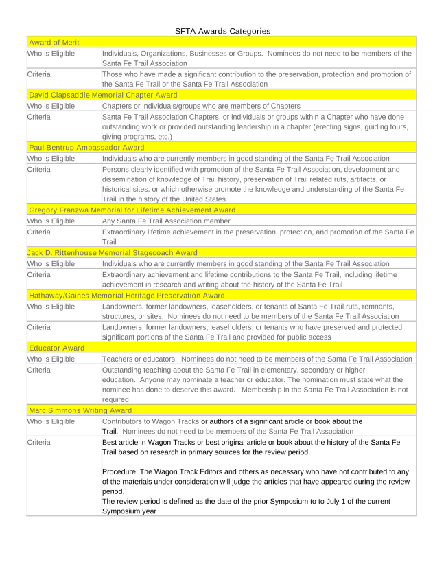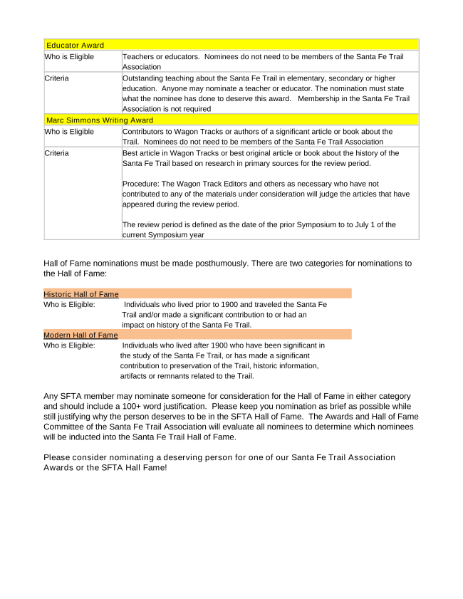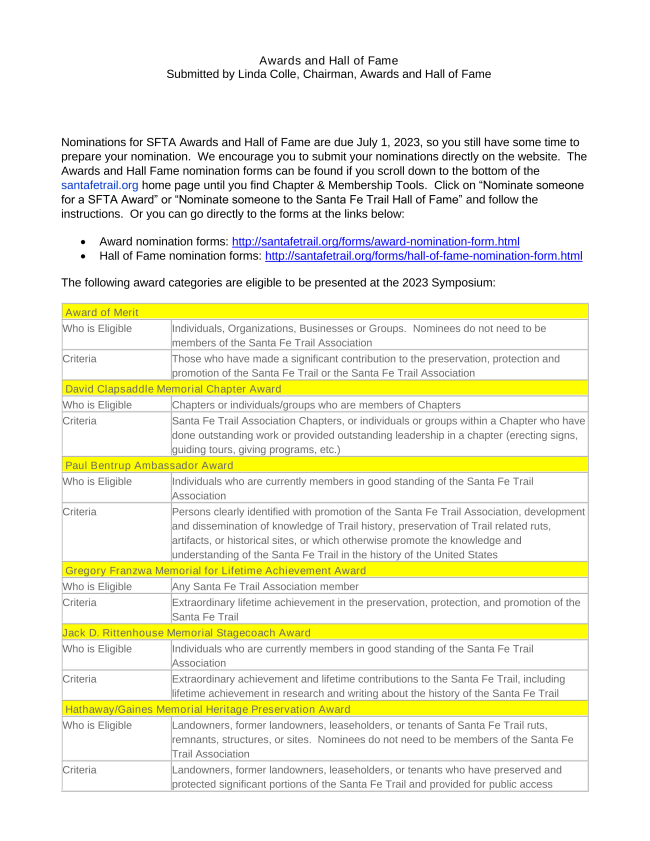 Manager of the Santa Fe Trail Association. Details will be forthcoming. For more information,