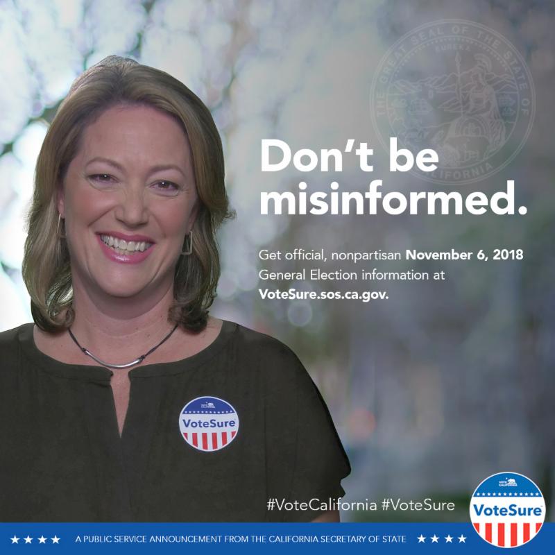 General Election, but so are those seeking to interfere with our elections by spreading misinformation,” said Secretary of State Alex Padilla. "With our new VoteSure initiative, we are reminding California voters that for reliable, official, nonpartisan information about the