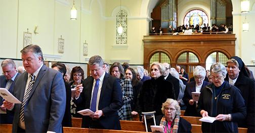 Auxiliary Bishop Michael J. Fitzgerald, who oversees Catholic education in the Archdiocese of Philadelphia, was the celebrant of a Mass concluding Catholic Schools Week Jan. 31st in the chapel of the Cathedral Basilica of SS. Peter and Paul. He was joined by senior leadership from the Office of Catholic Education as well as teachers who have dedicated their lives to the mission of Catholic education for 25 years, 50 years or more. A reception recognizing their years of faithful service followed the Mass.