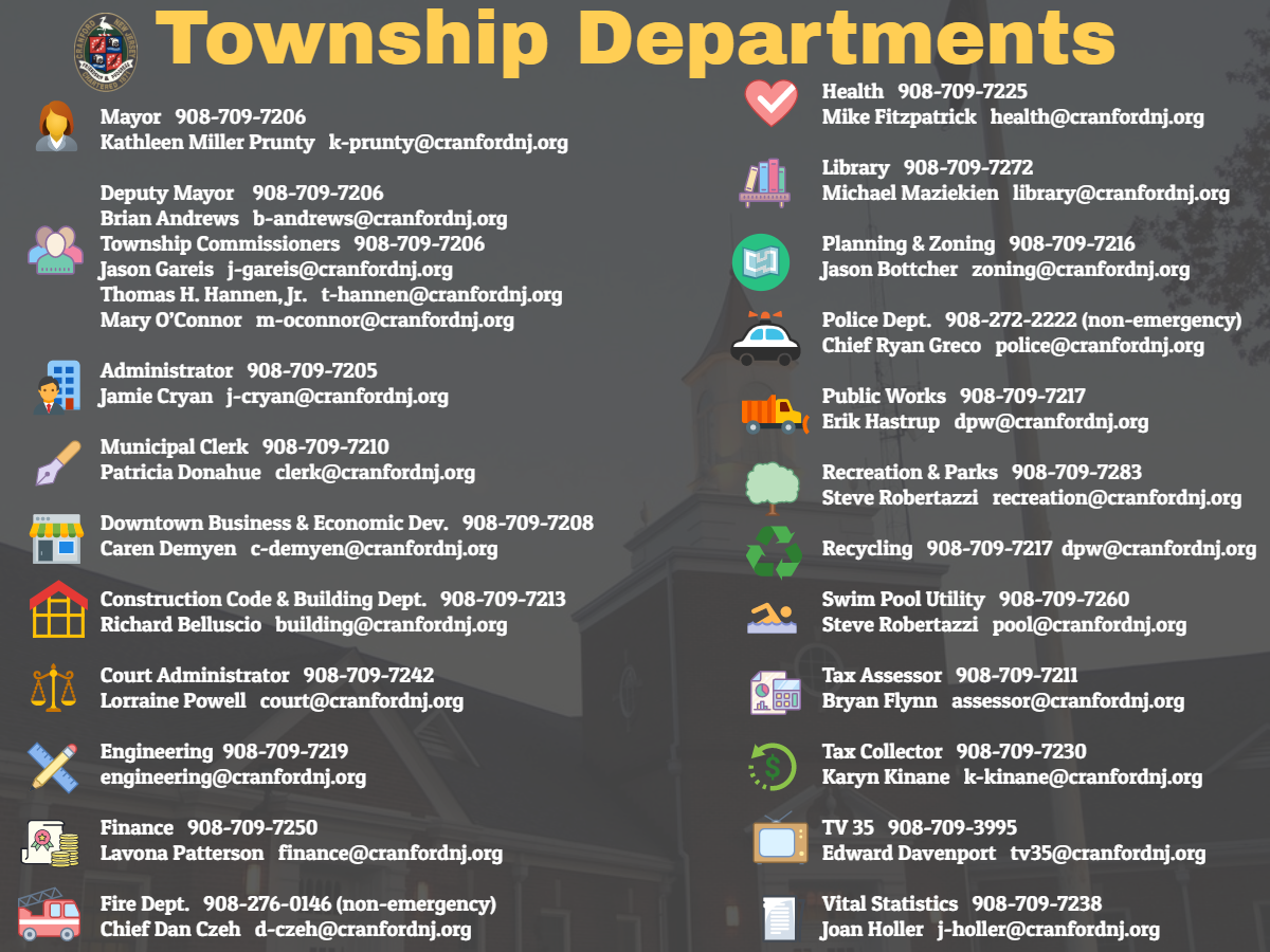 Public information was a priority in my campaign and I have remained committed to keeping residents informed. I ask for patience and understanding while the Township Committee negotiates on behalf of residents and in the best interest of this town that we all care about. We may not always agree but we shouldn’t question anyone else commitment to Cranford.