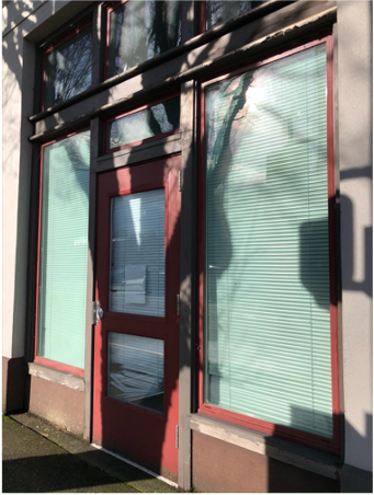 BEFORE: Grimy windows and dismal sight lines along State Avenue. Photo courtesy of Olympia Arts + Heritage Alliance.