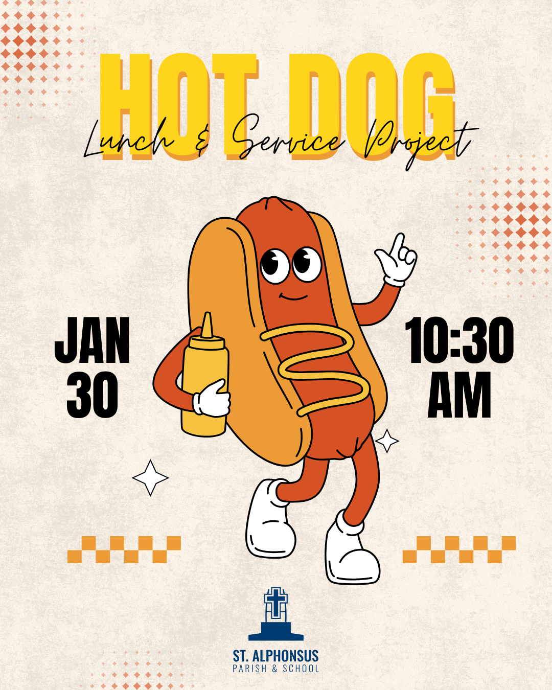 Please return one form for each of your children by Friday, January 23. If you plan to attend, please include your payment with your form, in an envelope marked Hot Dog Lunch. Checks can be made out to St. Alphonsus Catholic School. Forms will also come home in backpack mail this week.