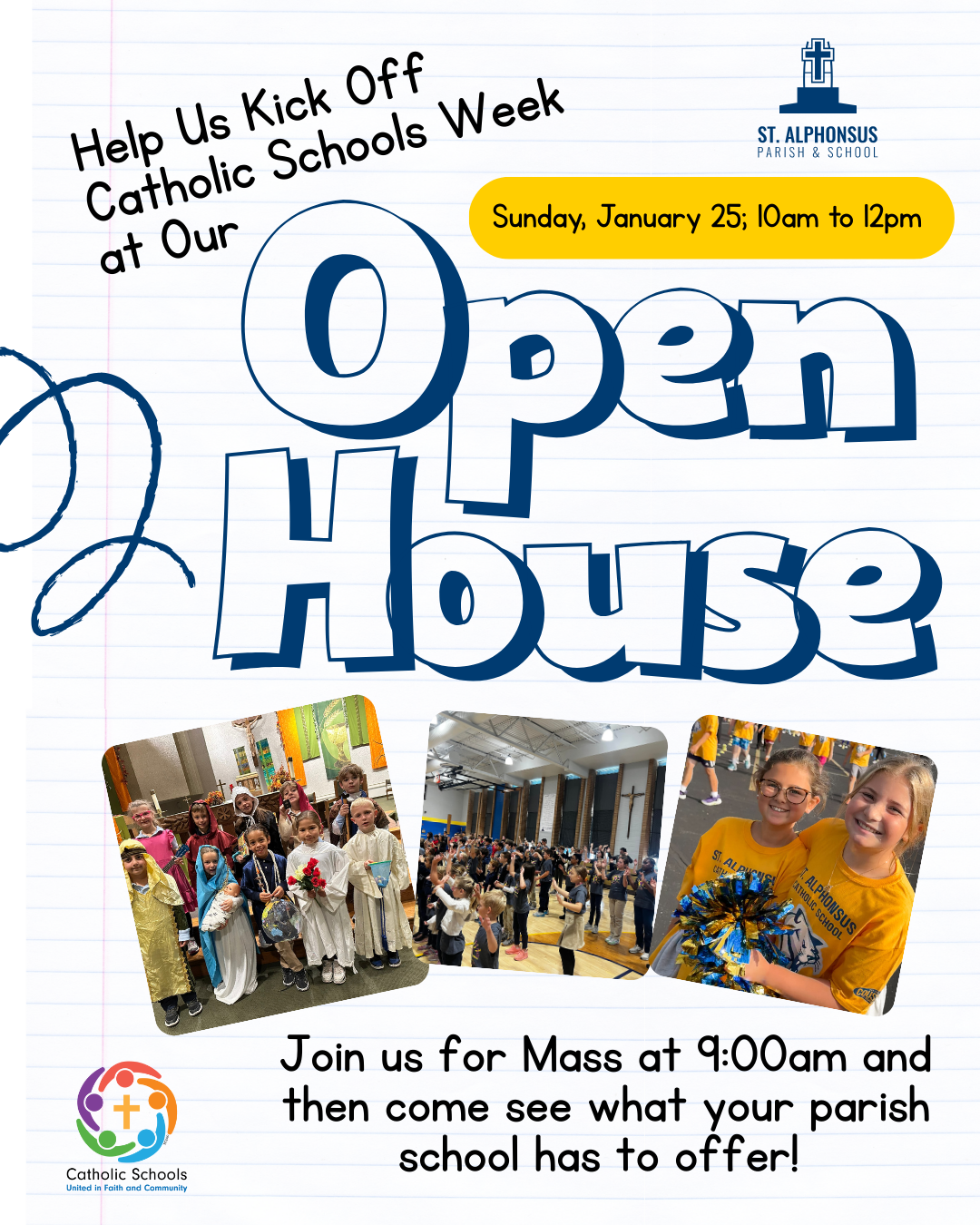 This year's national theme is again United in Faith & Community, and we can't wait to focus on the community aspect of our school--one of the greatest things about St. Alphonsus! We have lots of fun activities planned all week and YOU are invited to join us!