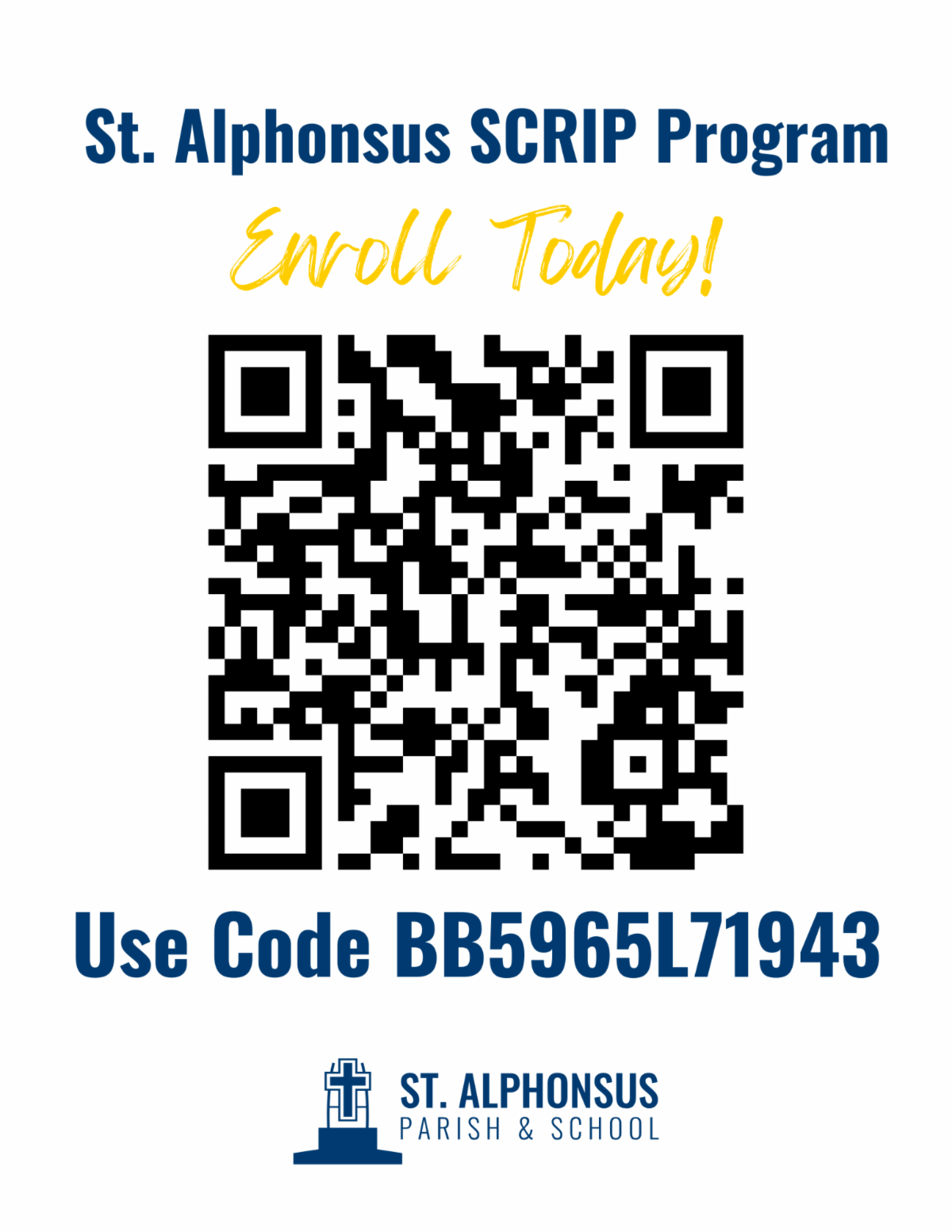 SCRIP is an easy way to earn money for our school and tuition credit for yourself! Please scan the QR code and fill out the SCRIP enrollment form & agreement below to get started. For questions, please contact our SCRIP coordinator, Michael Wusterbarth, via email here.