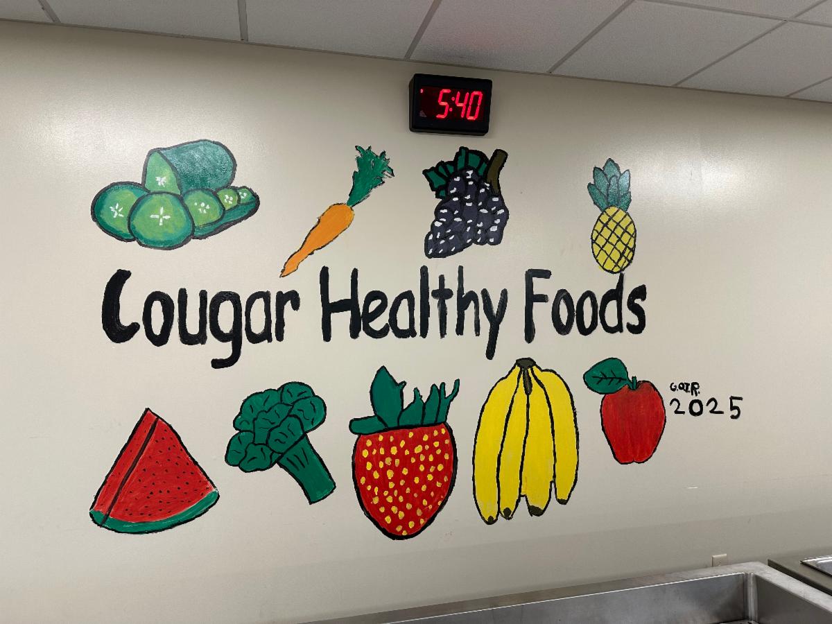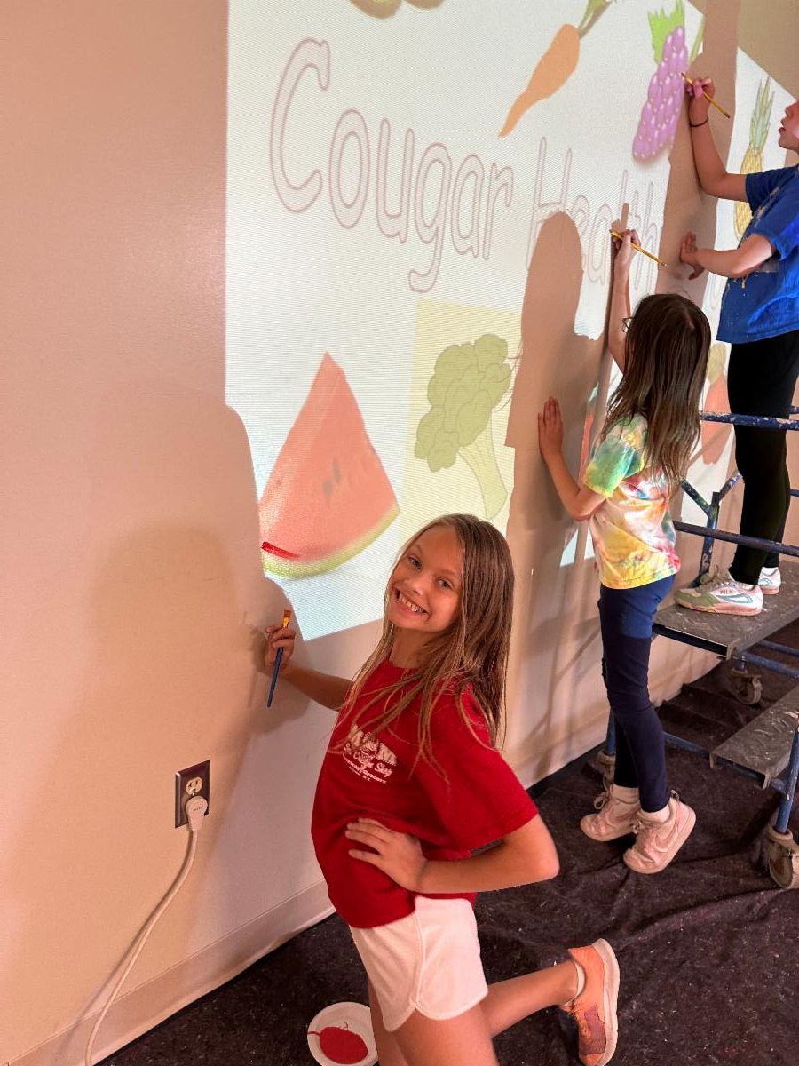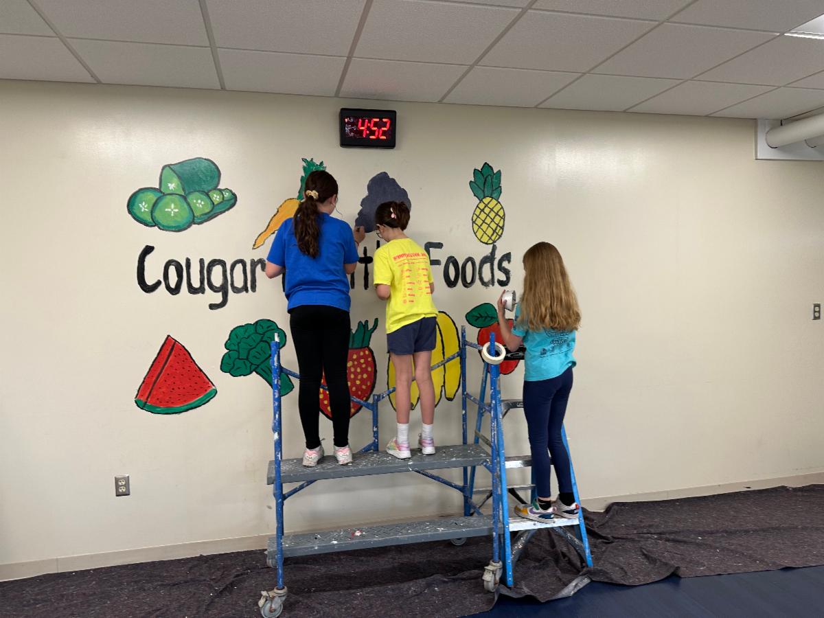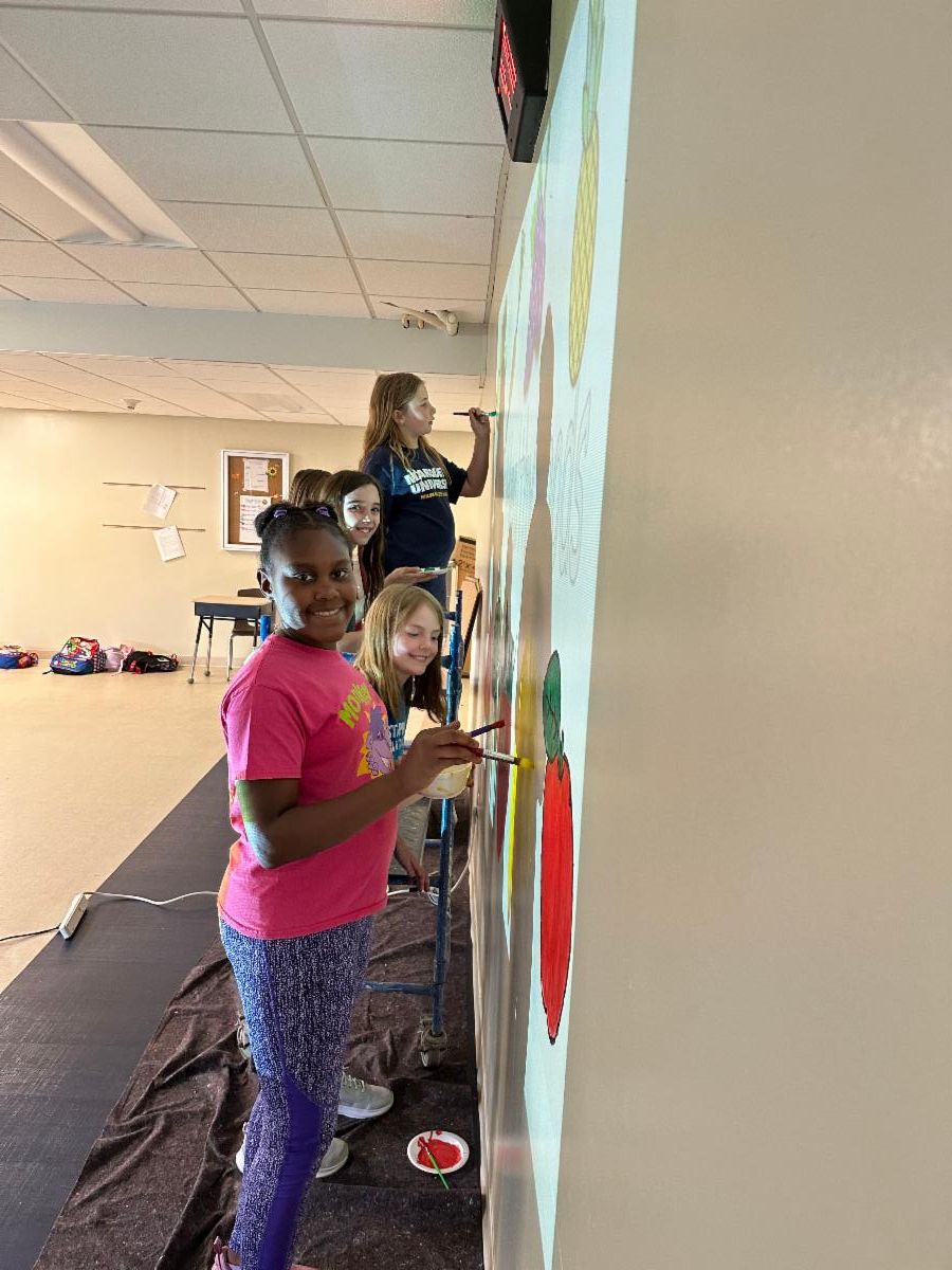 Our Girls on the Run team recently completed their annual service project. They created an amazing Healthy Foods mural on the wall of our school cafeteria! Great job, ladies!