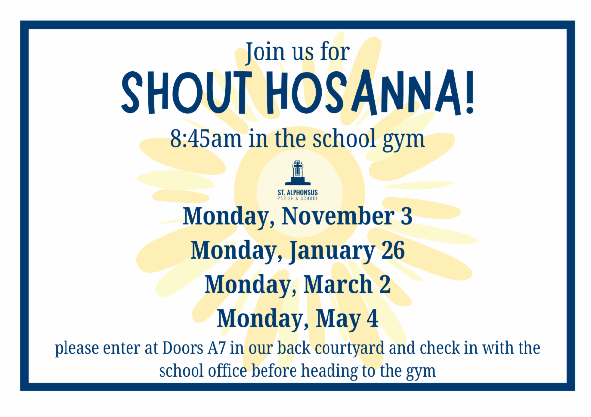 You may have heard one of the St. Alphonsus trustees, Alan Close, speak at a recent Mass about the 2026 Annual Appeal to support St. Alphonsus Parish. One of the exciting things he was able to talk about is our growing school! With that in mind, I want to tell you about some potential changes that could occur for next school year. Our proposal is that we would open another 3K classroom, which would be full day, either two or three days a week (T-TH/MWF). This gives families who aren't quite feeling ready for 5 days-a-week, full-day school, a sustainable option to choose from that differentiates us from other area preschools (most of which offer part-time on a half day basis). We are also considering opening another section of full time 4K, depending on numbers. Being in this position as a school to discuss growth plans is a wonderful thing! Enrollment this year will begin at the end of January, so I will update everyone regarding School Choice as well as Growth Plans prior to that.