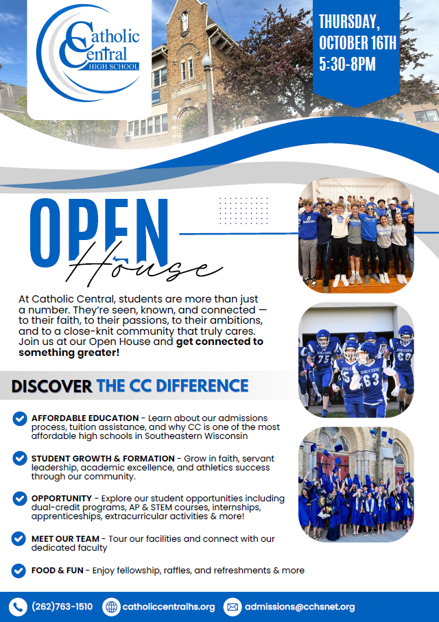 The 2025 St. Thomas More Open House will be on: Monday, October 20th from 4:30-8:00pm.