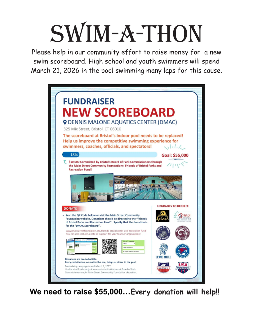 Proceeds go toward replacing the scoreboard at the Dennis Malone Aquatics Center!