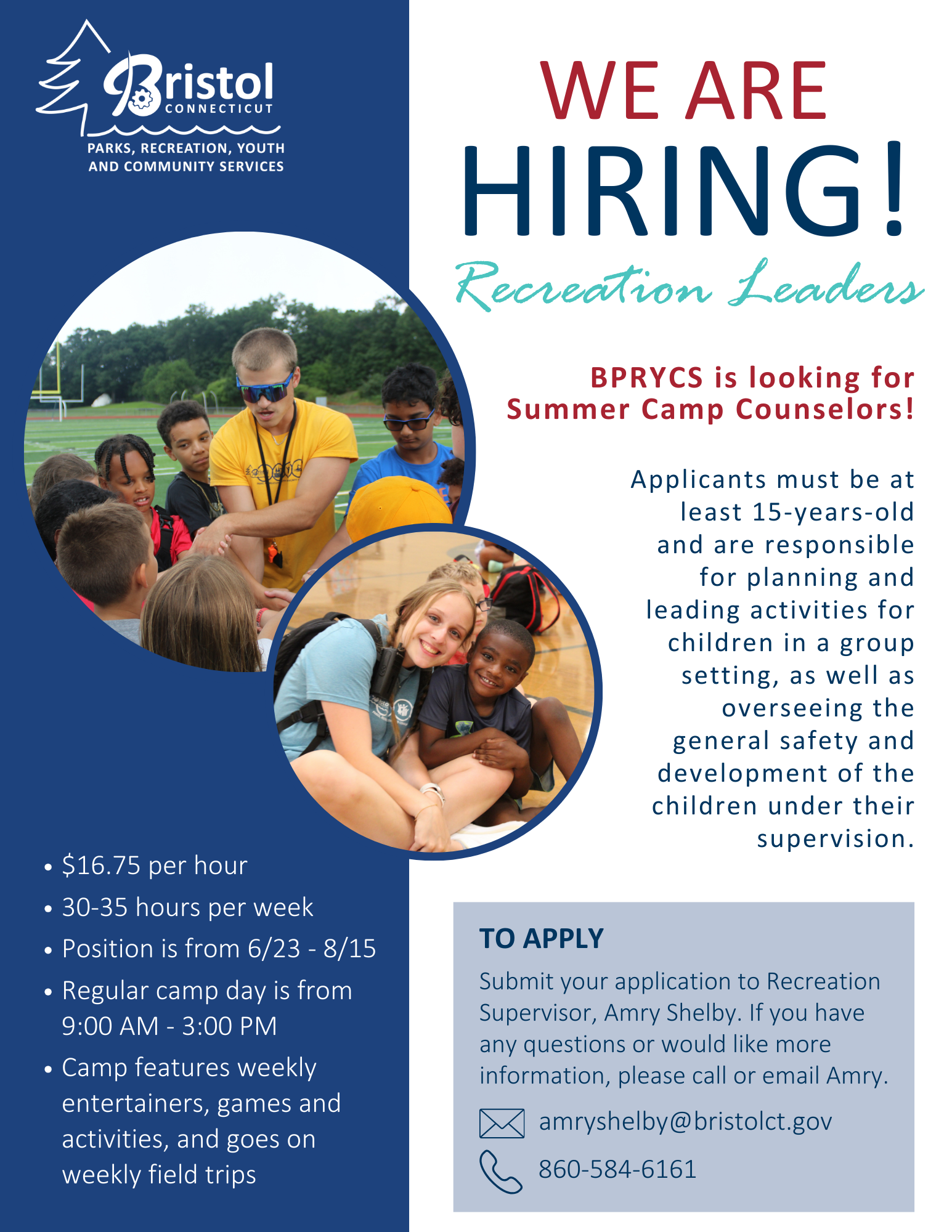 Complete the Seasonal Employment Application below and return it to the BPRYCS Office located at 51 High Street, Bristol, CT 06010.