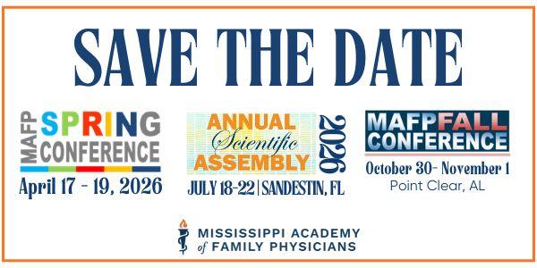 Register now for the MAFP Spring Conference scheduled for April 17 – 19 at the Sheraton Refuge in Flowood. This conference offers a broad spectrum of topics of clinical interest to family physicians. Designed to maximize both continuing medical education and networking opportunities, attendees may earn live CME credits over the weekend.