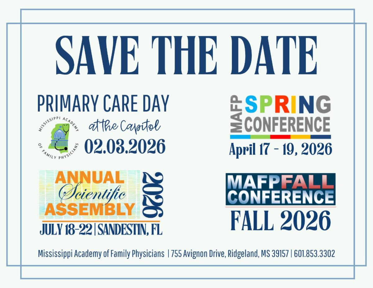 The time is drawing near for our 2026 Spring Conference and we can't wait to see you there! We'll offer CME plus time to network with your peers as well as exhibitors. Plus, family medicine residents and medical students will be joining us for their Spring Fling held in connection with this event. Be on the lookout for registration to open next week.