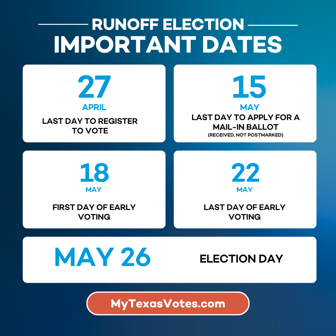 Terri Burke is the new Executive Director of the TDP. She put out a March Director’s report with some great news! The Primary turnout across Texas was exceptional, with many counties reversing 2024 patterns. Starr County turnout increased 280%, Hidalgo 114%, and major metros also surged — Bexar 153%, Dallas 125%, Harris 122%. And our county - Blanco was 64% better than 2024. Runoffs are historically low turnout, so maintaining this momentum is essential.