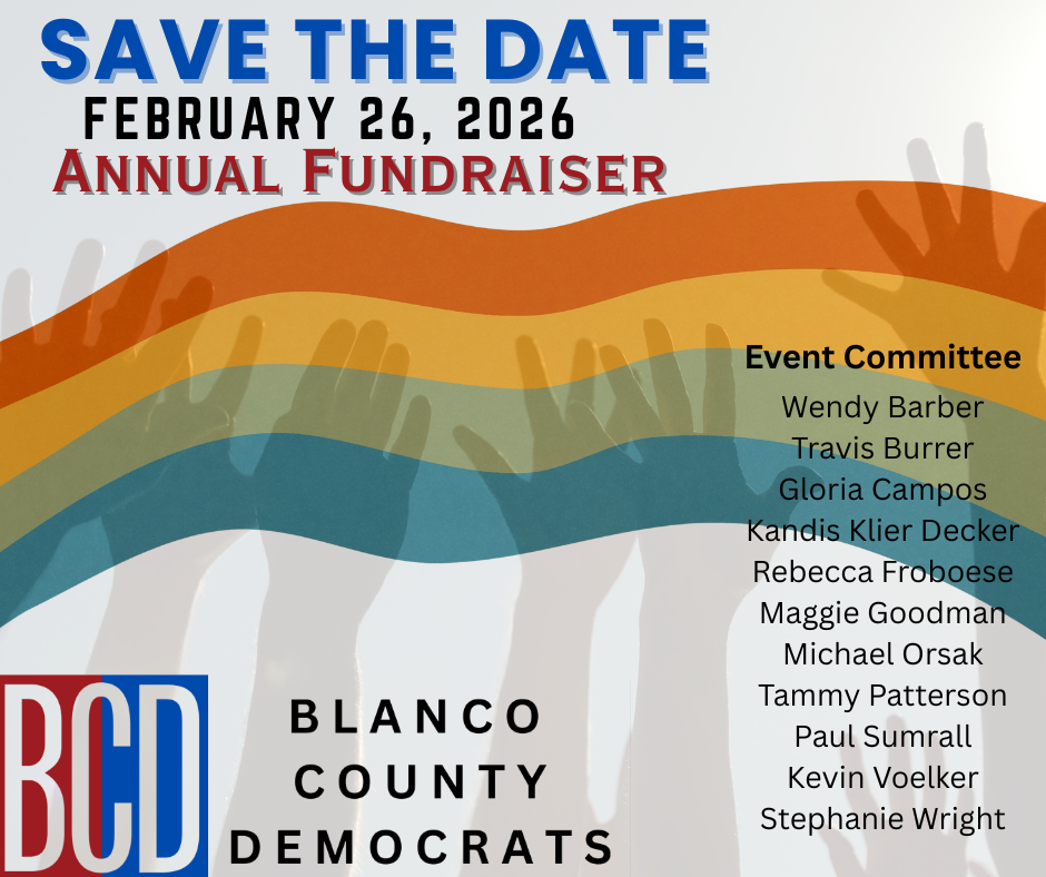 - Feb 26 / Blanco County Democrats Annual Fundraiser