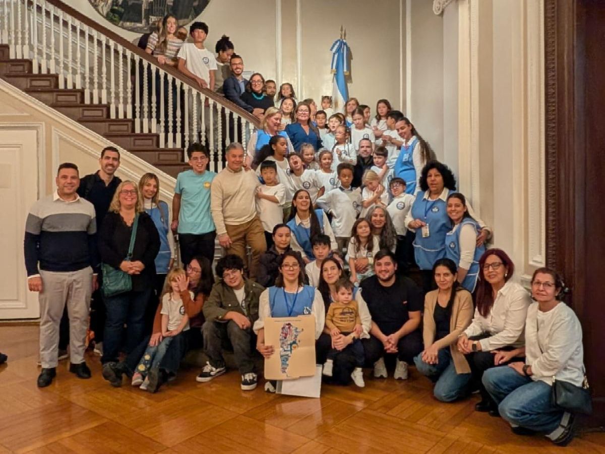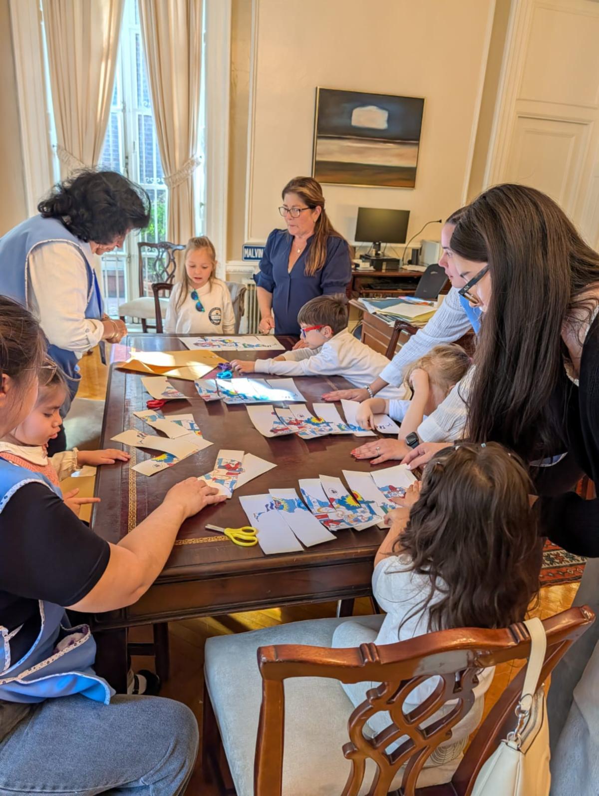 Durante la visita, docentes, padres y alumnos recorrieron las distintas áreas del Consulado, aprendieron sobre las funciones de cada sección, descubrieron las banderas de todas las provincias argentinas y crearon un gran mapa que las incluía a todas.