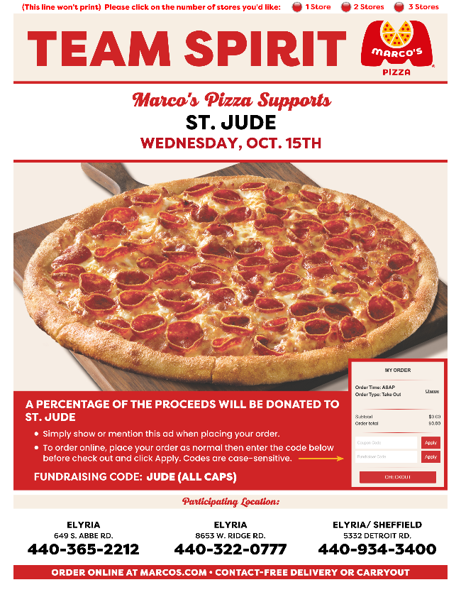 Marco's Pizza hosts a monthly school night with a percentage of the proceeds donated back to our school.