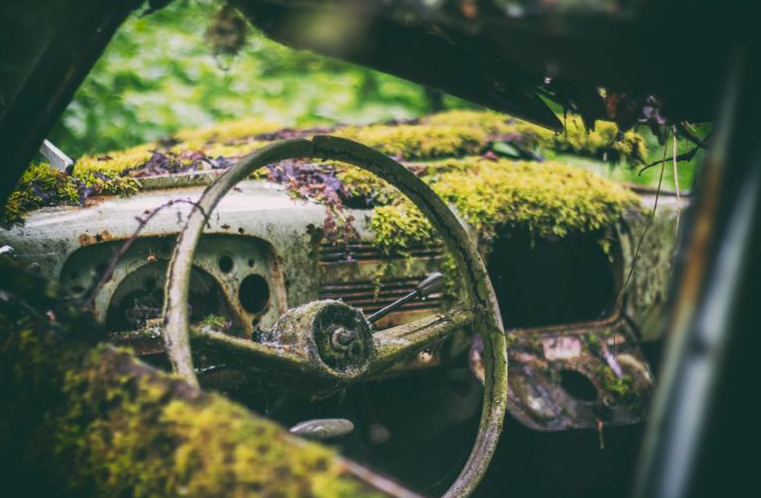 (D) *Kurios: Einsamer hellgrüner Oldtimer hängt seit Jahren im Hang.