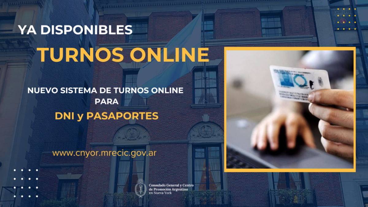 El nuevo sistema de turnos online se encuentra disponible para trámites consulares que requieren la intervención del RENAPER, en particular DNI y Pasaporte.