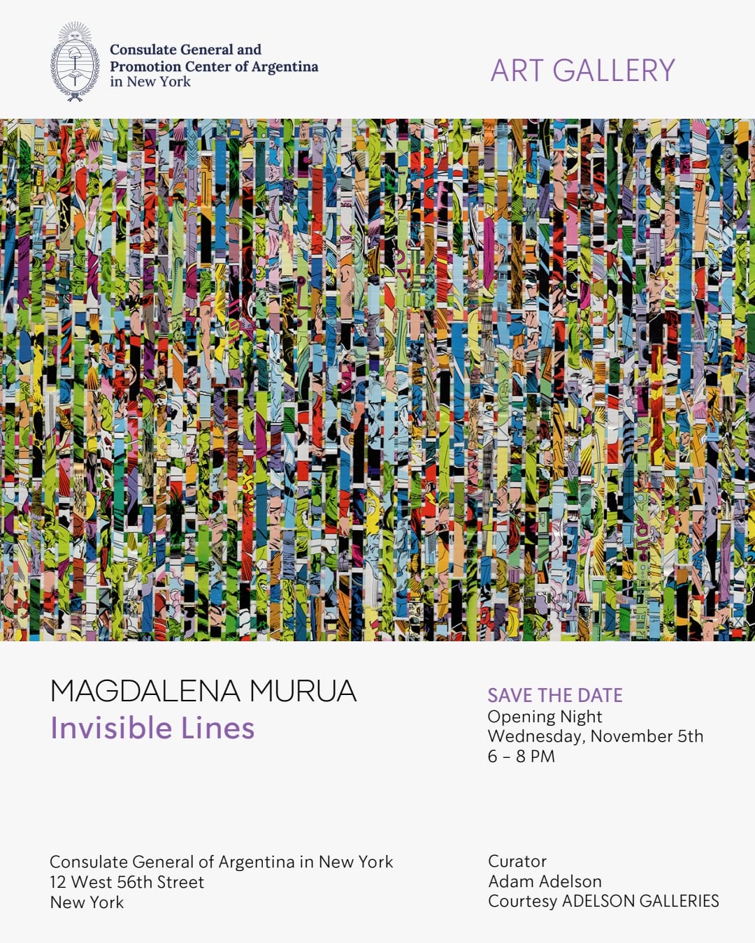 (*) Esta sección incluye actividades vinculadas con la cultura argentina que tienen lugar en la región de Nueva York y otros estados de la jurisdicción del Consulado General, en cuya organización y contenidos el Consulado General no ha tenido ni tiene intervención y, por tanto, no resultan actividades que cuenten con el auspicio institucional del mismo.