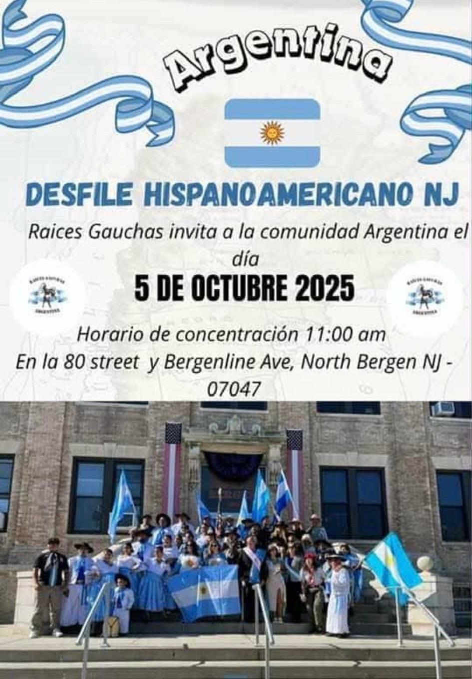 ¡El domingo 5 de octubre esperamos a toda nuestra comunidad con nuestros colores! Nos reunimos a las 11 horas am, en 80th Street y Bergenline Avenue, North Bergen NJ. Organiza Raíces Gauchas