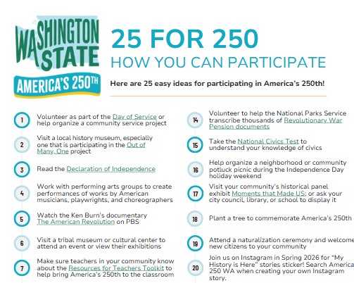 Incorporate our official themes of America's 250th anniversary—We the People, Power of Place, and Sharing History—into your existing July 4th activities.