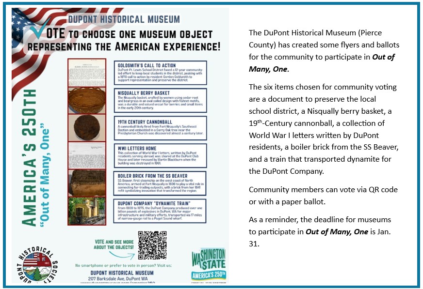 In collaboration with the Washington Museum Association, museums across the state will offer free or discounted admission and promote the “Out of Many, One” project.