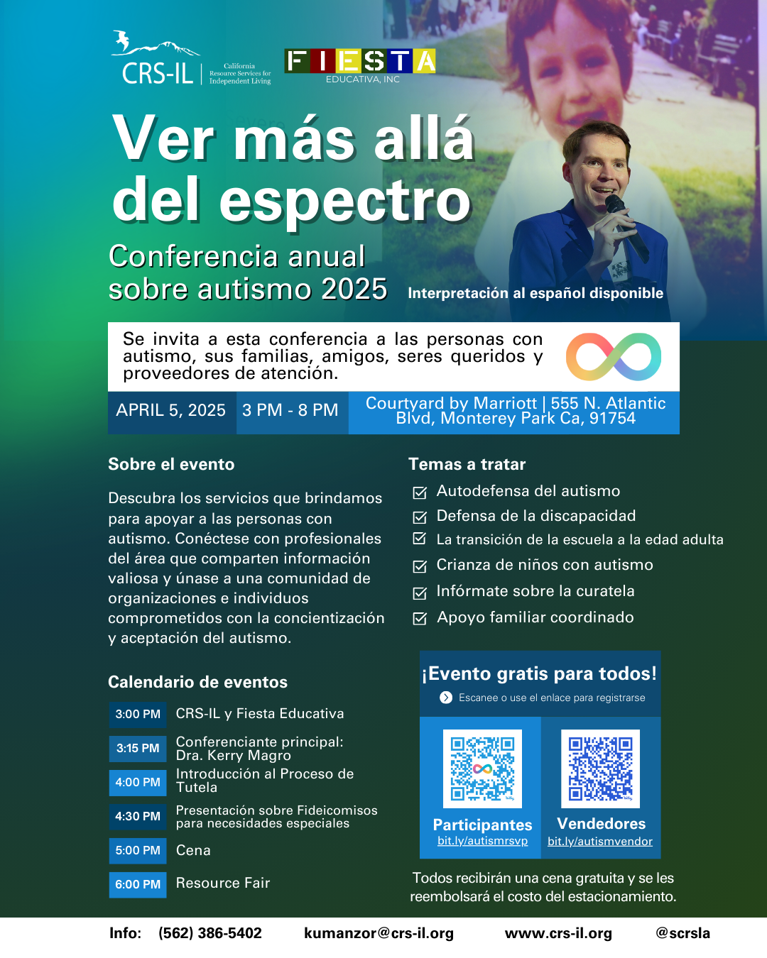 En Abril celebramos la Concienciación sobre el Autismo, la Aceptación del Autismo y el Día Mundial del Autismo el 2 de Abril de 2025. Si tiene autismo o ama a alguien con autismo, únase a nosotros para ayudar a aumentar la comprensión y la aceptación de las personas con autismo.