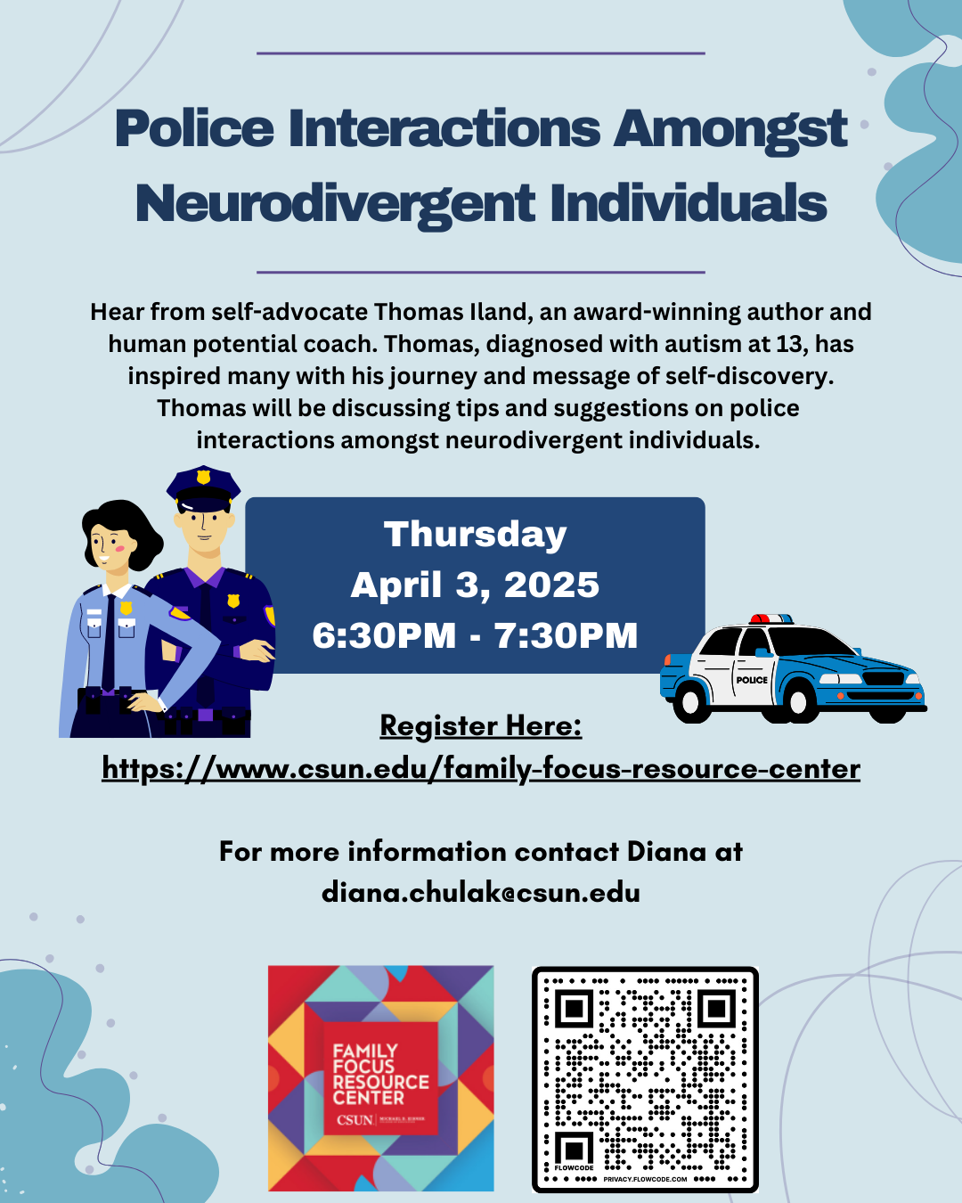 Hear from self-advocate Thomas Iland, an award-winning author and human potential coach. Thomas, diagnosed with autism at 13, has inspired many with his journey and message of self-discovery. Thomas will be discussing tips and suggestions on police interactions amongst neurodivergent individuals.
