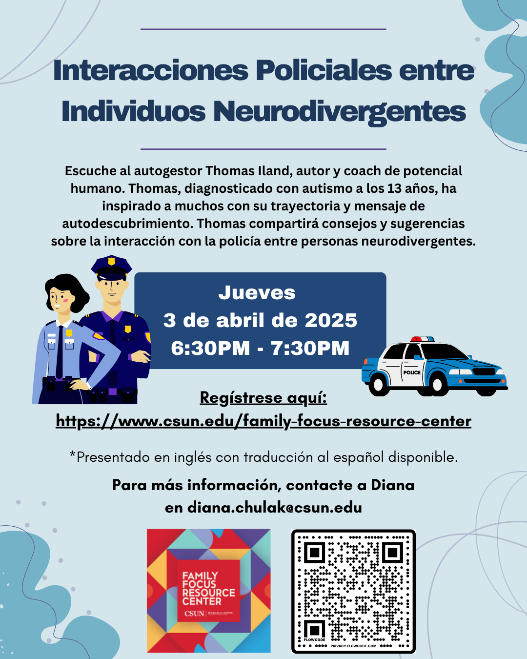 Escuche al autogestor Thomas Iland, autor y coach de potencial humano. Thomas, diagnosticado con autismo a los 13 años, ha inspirado a muchos con su trayectoria y mensaje de autodescubrimiento. Thomas compartirá consejos y sugerencias sobre la interacción con la policía entre personas neurodivergentes.