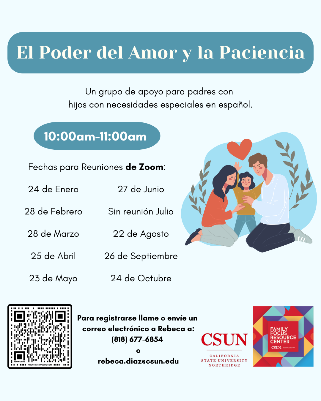 Un grupo de apoyo para padres con hijos con necesidades especiales en español.Las reuniones son via Zoom el cuarto viernes de cada mes de 10:00 am a 11:00 am.