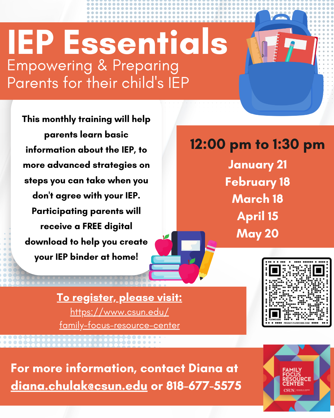For more information, please contact Diana at diana.chulak@csun.edu or call