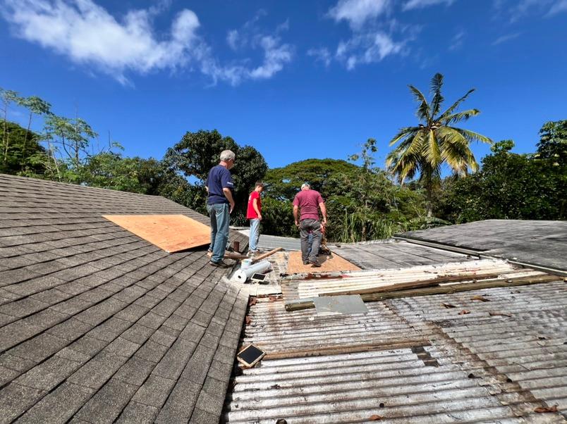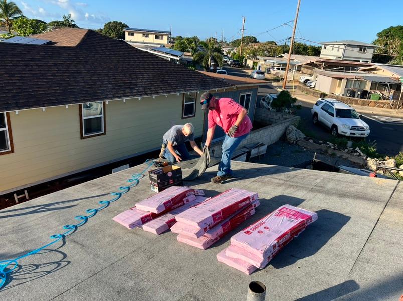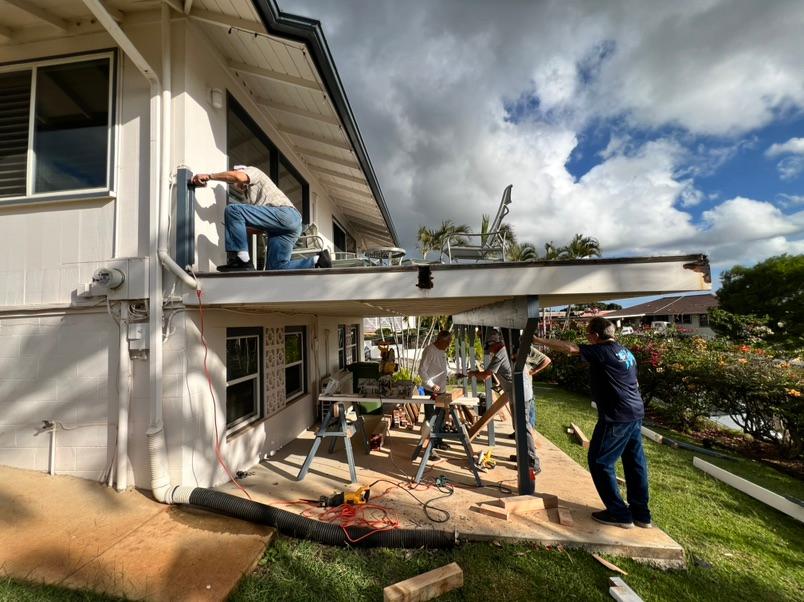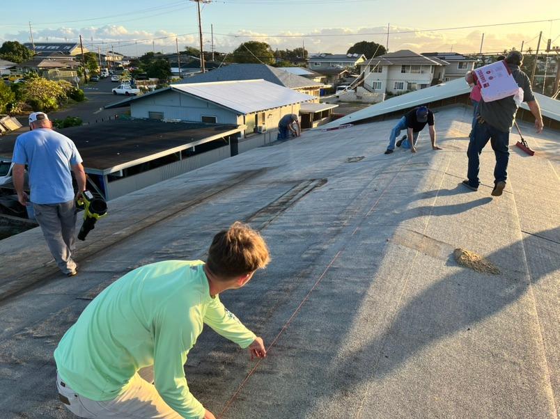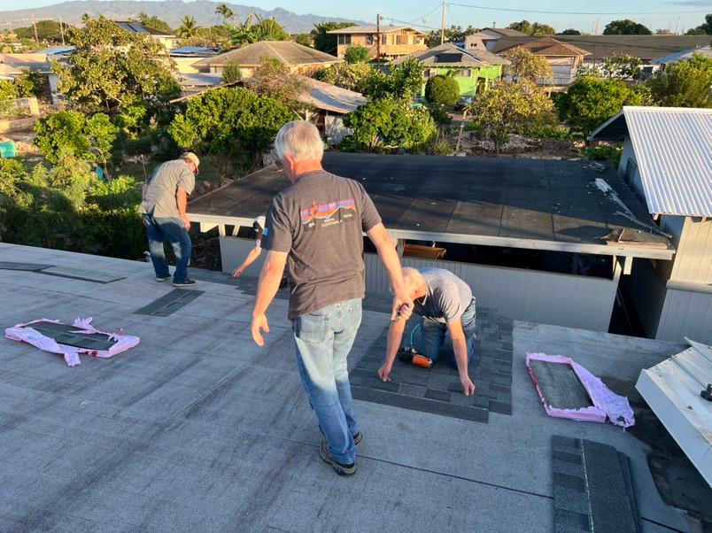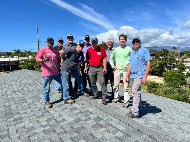 | | The railing system on the state parsonage lanai had succumbed to the weather. The constant sun and the moisture of island weather created rot on many of the wooden panels. This was no match for the creative influence of the mission teams. They purchased the wood and began the repairs. One could not ignore the speed with which this amazing team worked. On day one, they had measured, purchased the wood and dismantled the railings. By the end of day two, new rails were safely added to the parsonage lanai. | | | | Newtown Ewa Beach underwent a major transformation. The parsonage was gutted and remodeled to provide adequate housing for the pastor and family. The worship facilities are nothing short of miraculous in the reimagining of their look. The funds, however, trickled to the point of needing to wait on some items that were necessary but not immediate. One of those items included the shingling of the parsonage roof. The project was estimated to be between $50,000 and $60,000. | | |