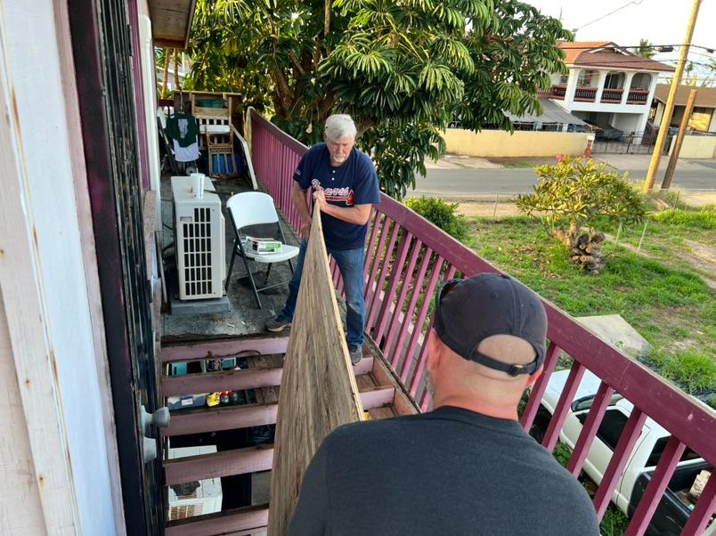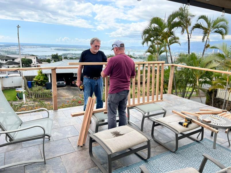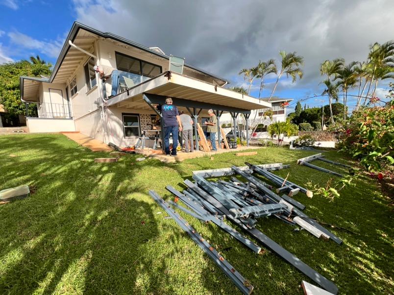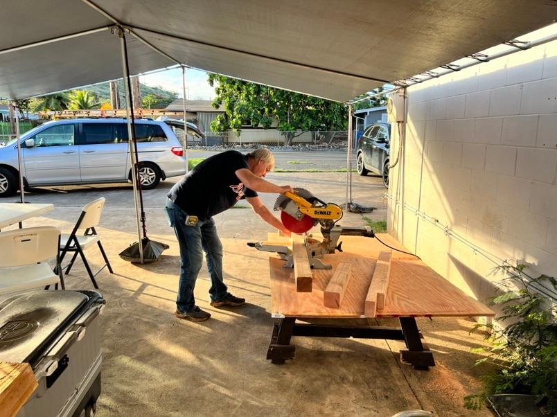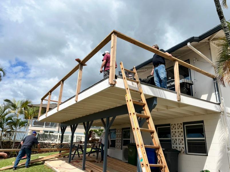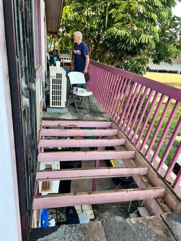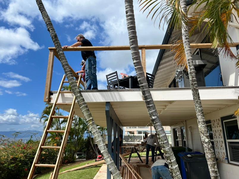 Unstoppable should be the name of this worship tour. Maili Church of God parsonage needed repair of the lanai and stairs. On Saturday morning, the crew measured for the lumber purchased and commenced to make the repairs needed. Within a matter of hours, the reinforced structure stood ready for service.