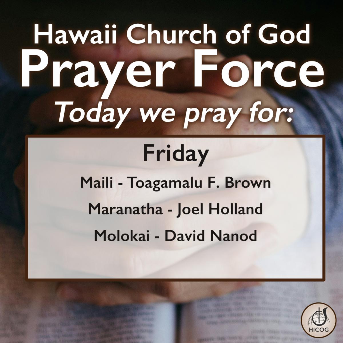 Join us in prayerful anticipation of miraculous meetings and God encounters. Pray for their physical well being and safety. Ask God that their encounters be transformative for the spread of the Gospel of Jesus Christ. Also, pray for their families here in Hawaii as they support their loved ones on the mission field.