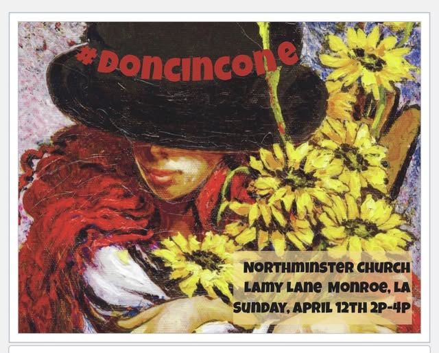 | | SPECIAL ARTS EVENT APRIL 12 | | On Sunday, April 12 from 2pm - 4pm a special and exciting event will be held at Northminster. Our Education/Arts Commission is collaborating with PEO Ch V to bring the beautiful works of artist, Don Cincone, to us in a Spring Talent Showcase. The event will also celebrate Cincone's 90th birthday and a fantastic program of art and music will be presented. Opening the program will be the West Monroe High School Jr. ROTC posting the colors. Appearing will be Don Cincone, artist, Alexa Jones, Ryan Kersh, and Morgan Meyer Huth, soloists, the Northminster Choir with D.H. Clark on organ and Elizabeth Rennick on oboe, John David Cleveland will bring two very special selections and the Martin Luther King Jr. Choir will close out the program. | | |